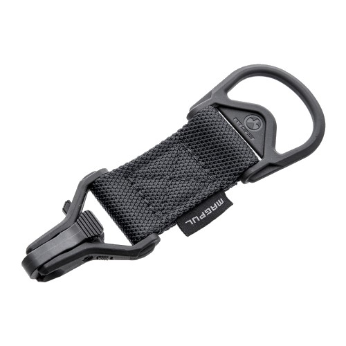 The Magpul MS1-MS3 Sling Adapter is designed to use with the Magpul MS1 Sling giving you the capability to convert from two-point to single-point configuration. The paraclip on the adapter allows for provide quick transition or quick release if necessary. The Cross-Bolt Lock Bar lets the user lock the clip closed for added security.